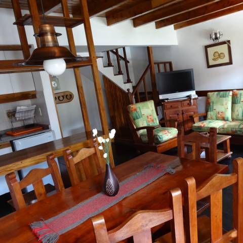 Nuestras confortables y amplias cabañas pueden alojar hasta 7 personas en sus cálidos ambientes totalmente equipados, ideales para disfrutar unos días de relax.